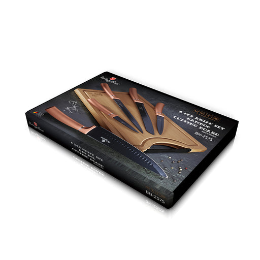 Ver todos los detallesBerlinger Haus Bazar Jgo_de_Cuchillos_c/tapla_de_picar_d/Bamboo_6_pcs_black-_rose_gold