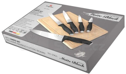 BazarJuego de 5 cuchillos con tabla de cortar de bambú de BERLINGER HAUS de la serie Black Rose. Diseñados para cortar carne y pescado, cortar pan y pe...